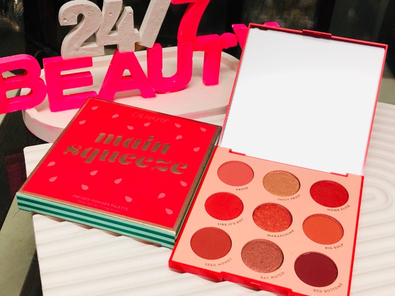 Colourpop Main Squeeze is a 9-shade red-toned eyeshadow palette featuring rich matte and shimmer finishes. Highly pigmented, smooth, and wearable for daily or bold looks.